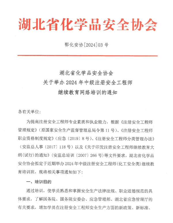 2024年中級注冊安全工程師繼續(xù)教育網(wǎng)絡(luò)培訓(xùn)通知